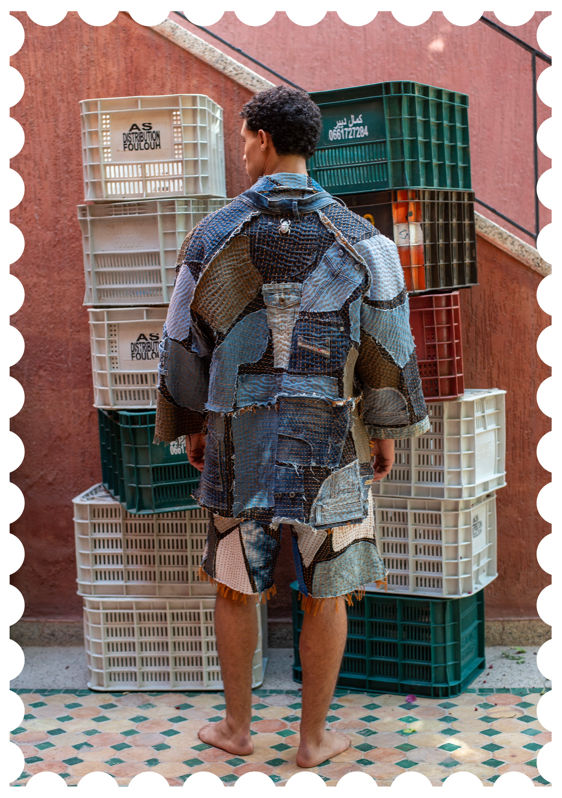 Crafted from durable denim with a modern, gender-neutral silhouette, this short kimono blends artisanal detail with everyday ease. Each piece is adorned with a hand-embroidered patch cut from reclaimed vintage denim, giving every kimono its own unique character.
