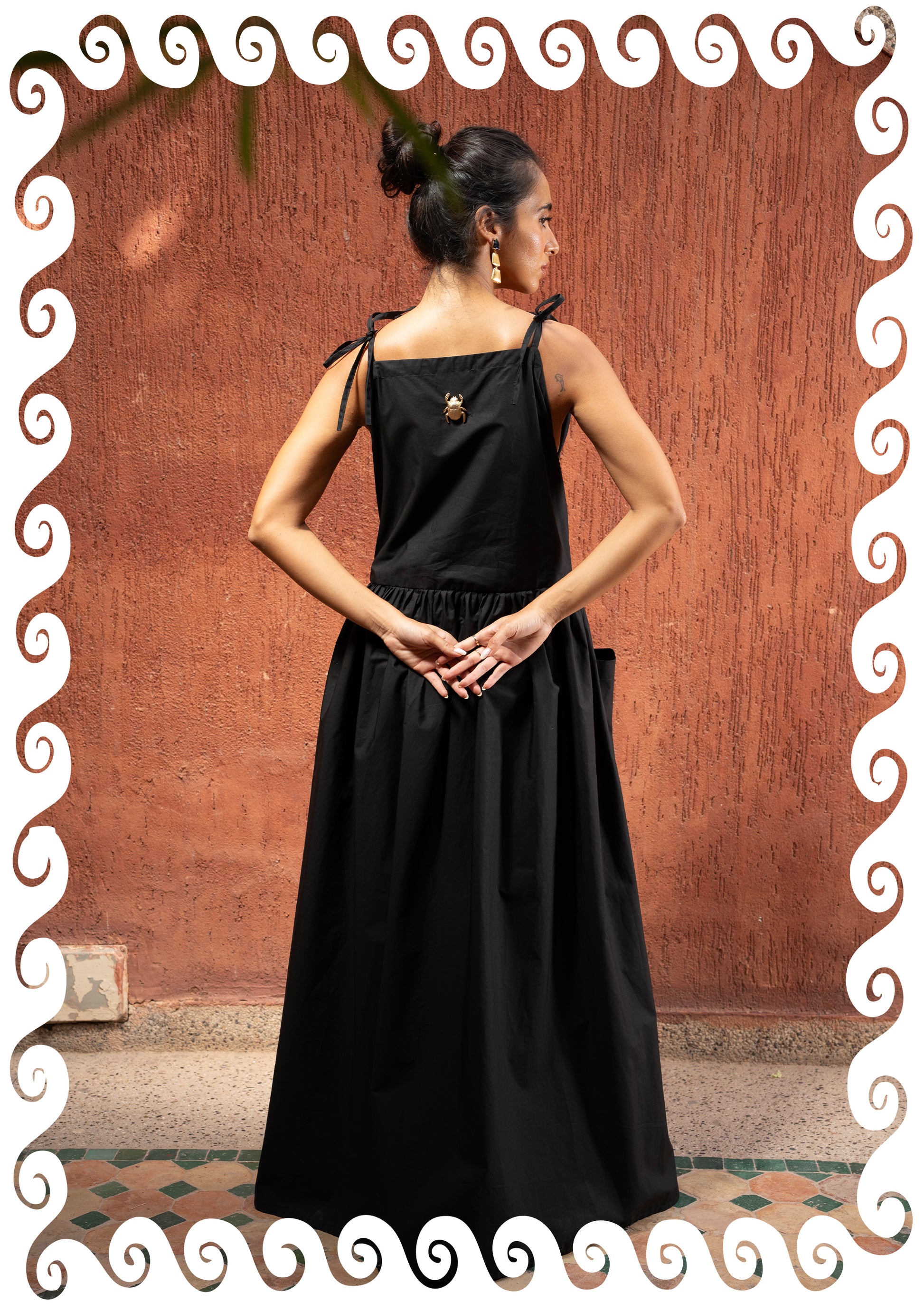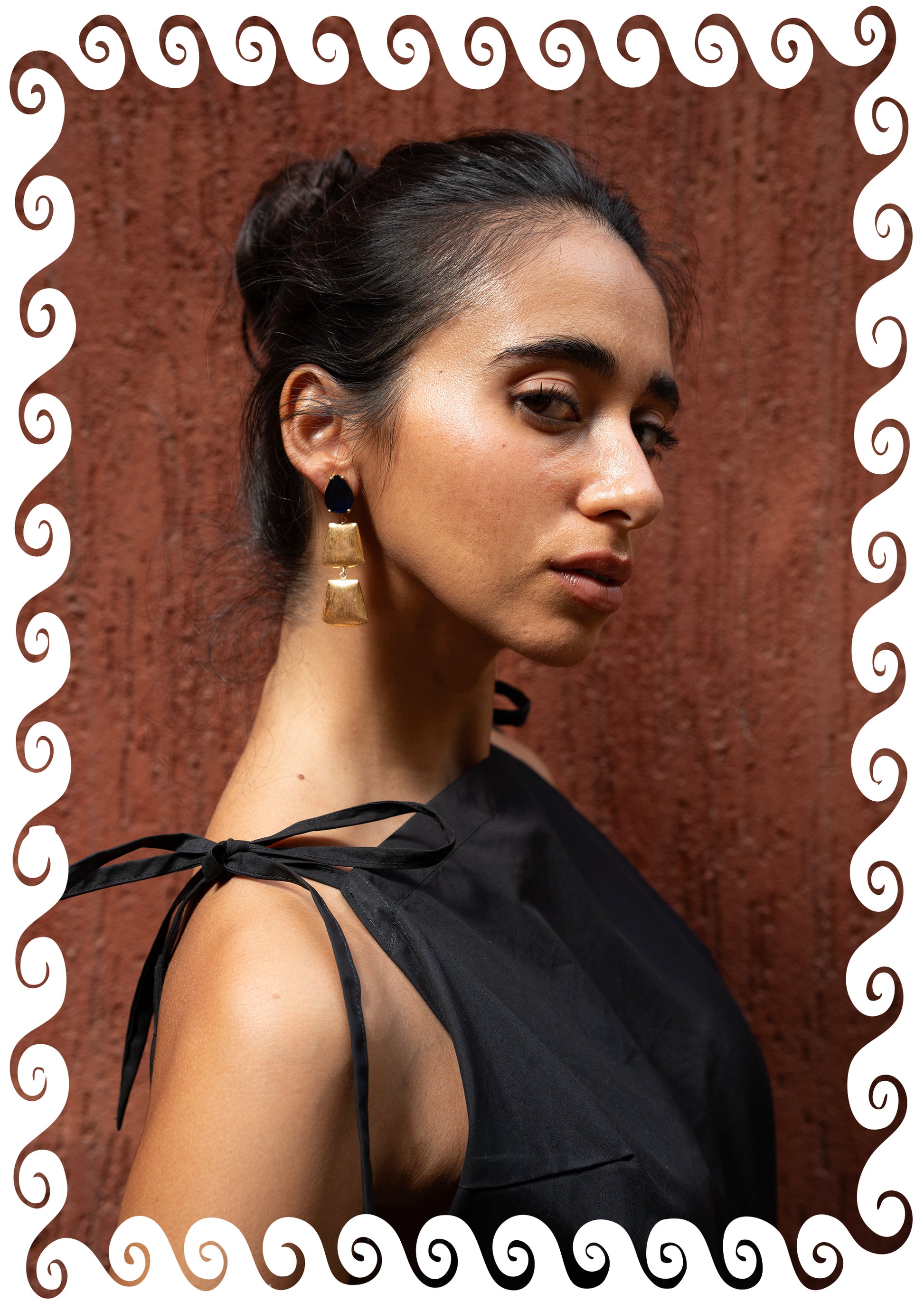 Both versatile and flattering, it carries Moro’s signature touch — the scarab detail at the back.”